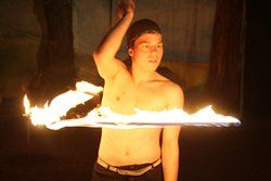 Bei unserer Feuershow kann eine Jonglage mit einer oder zwei Stangen sowie mit Pois gezeigt werden. Außerdem kommt das selten gezeigte Feuerlasso zum Einsatz. Die Feuershow ist besonders attraktiv in Abendshows.