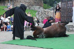 Bei diesen Darbietungen sind die Pferde beteiligt, der Platzbedarf beträgt ca. 15 x 10 m und diese Darbietungen können auch in geschlossenen Räumen aufgeführt werden.